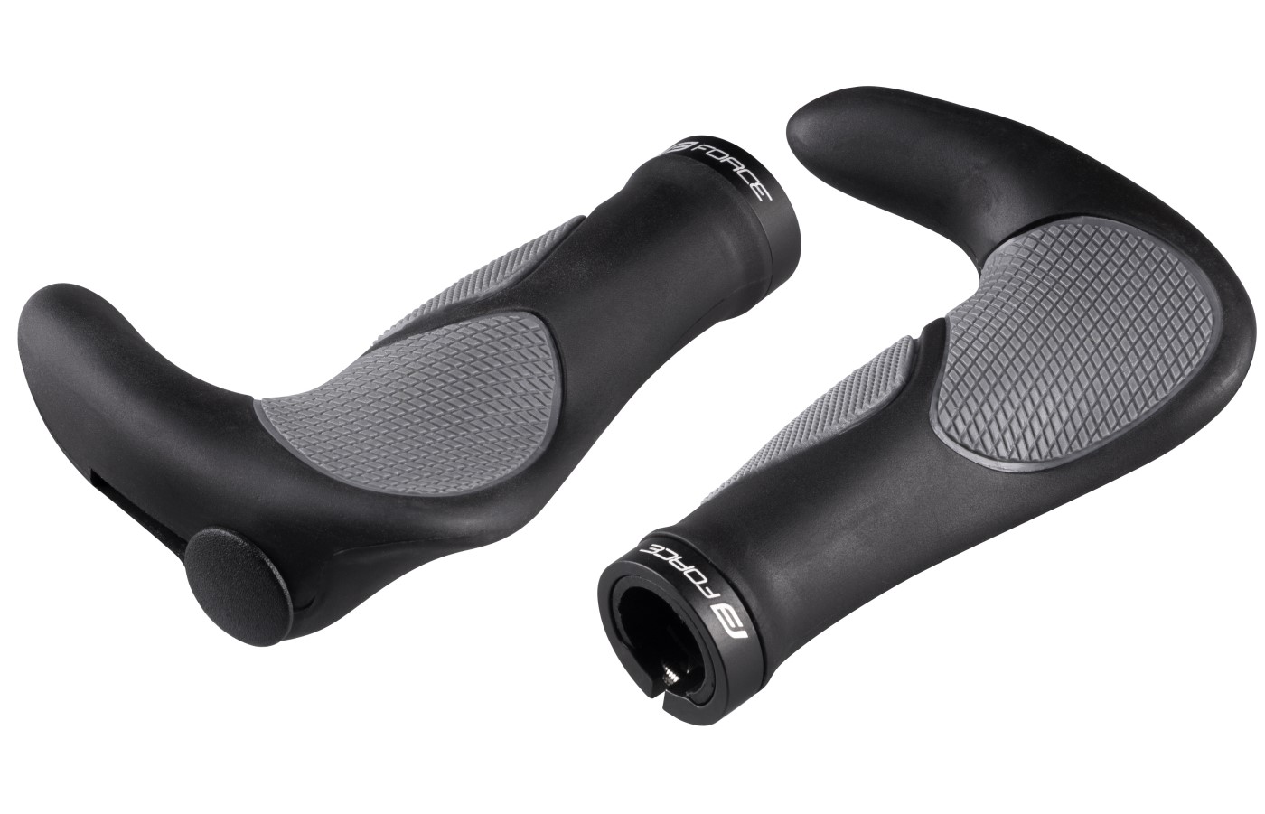 gelová madla FORCE s rohy a zátkami jištěné hliníkovou objímkou s logem FORCE vnitřní průměr: 22,2 mm výška rohů od osy po vrch: 75 mm užitková délka madla: 102 mm celková délka: 150 mm hmotnost 1 páru: 305 g baleno na kartě FORCE